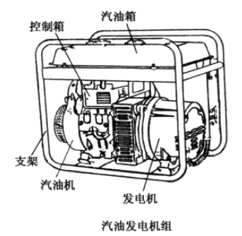 內燃發電機組是將內燃機的機械能通過發電機轉變為電能的機器,它主要由內燃機、發電 機、控制屏(箱)、底架、聯軸器、油箱等組成。圖1-1為柴油、汽油發電機組整機示意圖。