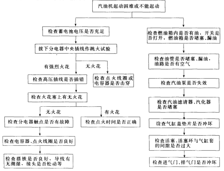 (1)汽油機(jī)起動(dòng)困難或不能起動(dòng)