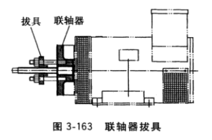 (2)拆下彈性聯軸器。按圖3-163旋入拔具軸螺桿(頂桿),輔以鐵錘錘擊螺桿頂端, 拆下彈性聯軸器。