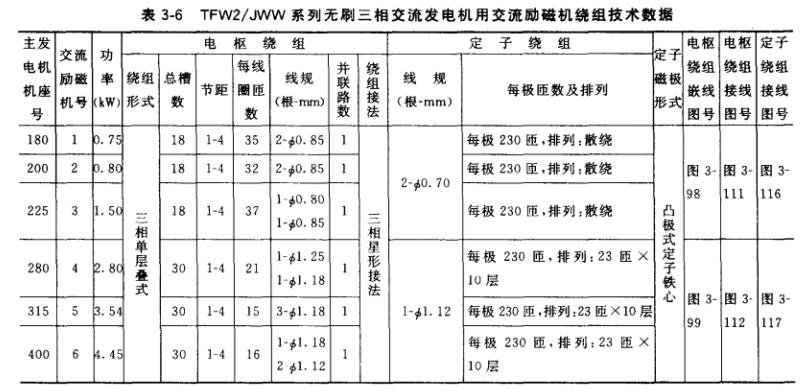 (5)每相線圈組數(shù)。等于發(fā)電機(jī)極數(shù)。
