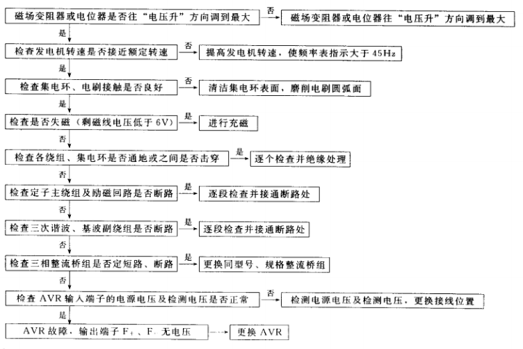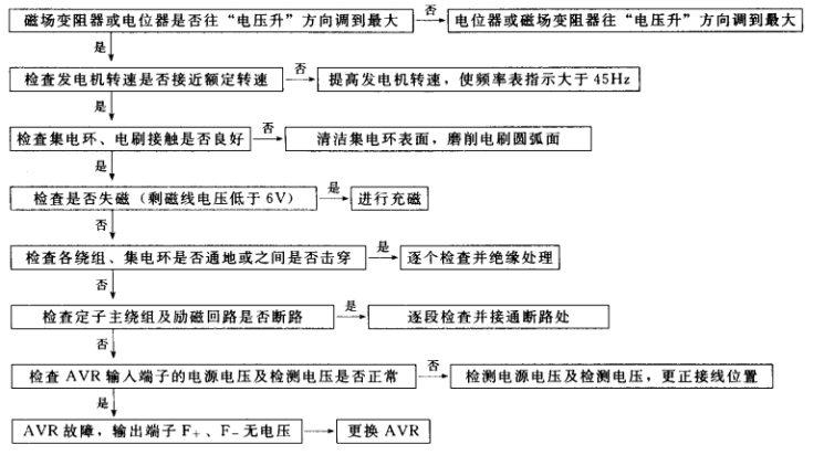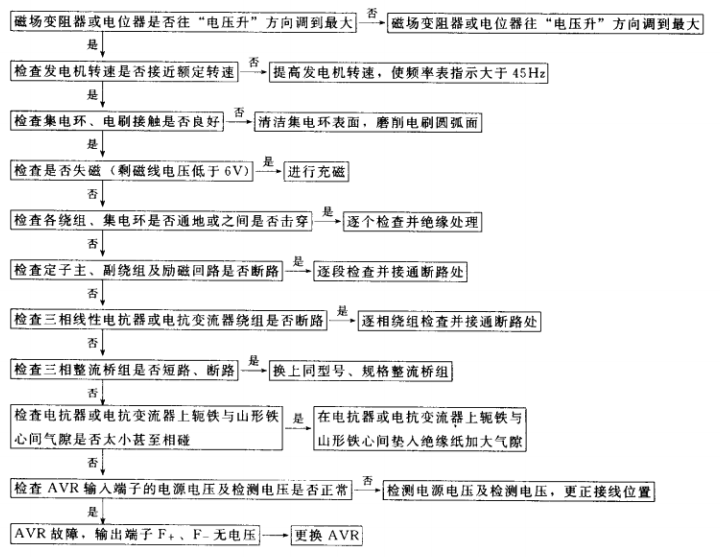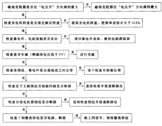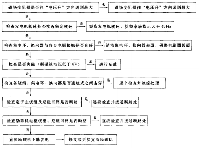 6.直流勵磁機勵磁有刷三相交流發(fā)電機不能發(fā)電故障排除步驟