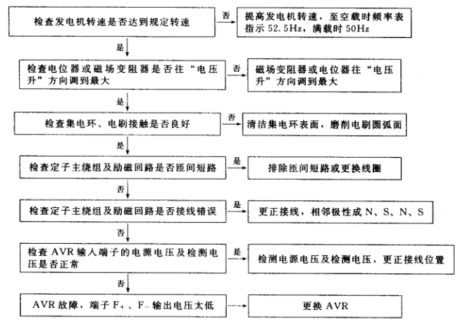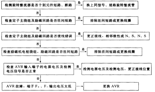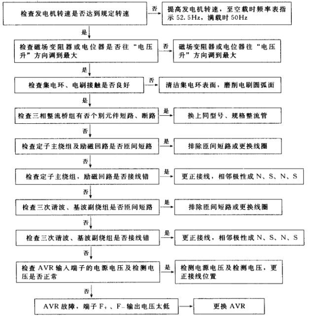 1.有刷三相交流發(fā)電機電壓太低故障排除步驟