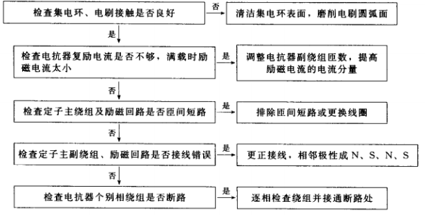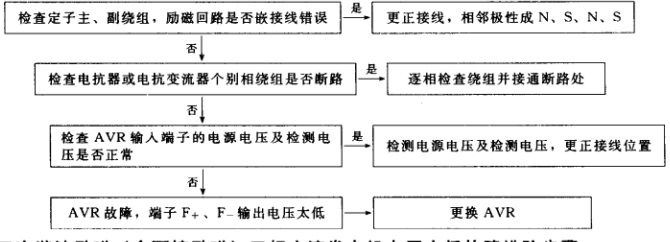 3.電抗移相式、電抗變流復(fù)合式相復(fù)勵(含分流可控)三相交流發(fā)電機電壓太低故障排除步驟
