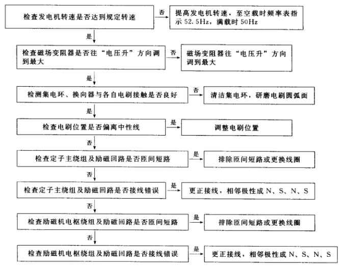 6.直流勵磁機勵磁有刷三相交流發(fā)電機電壓太低故障排除步驟