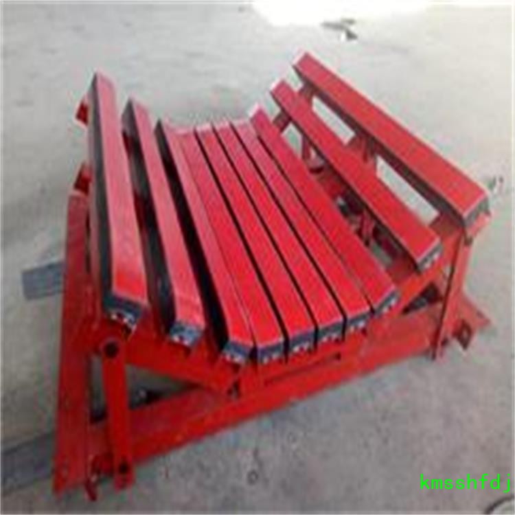 7.物料轉載點的支承緩沖結構,由于保證了輸送帶的面與面的接觸,受力均勻,有效防止了由托輥斷裂、脫落造成的皮帶縱向撕裂,同時大大降低了皮帶被鐵器或尖銳物體穿透后導致縱向撕裂的概率。