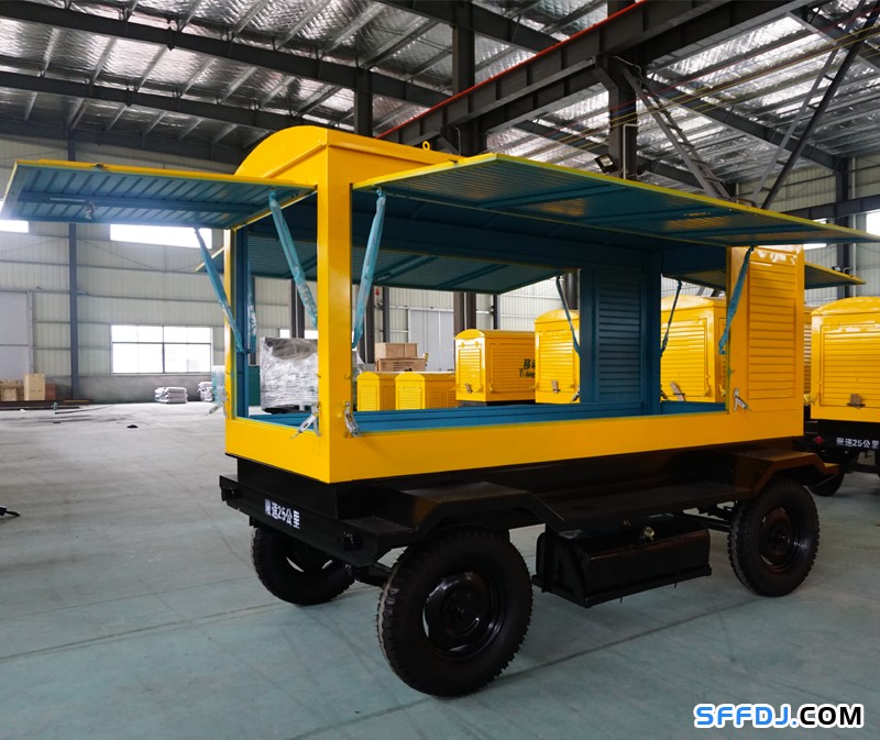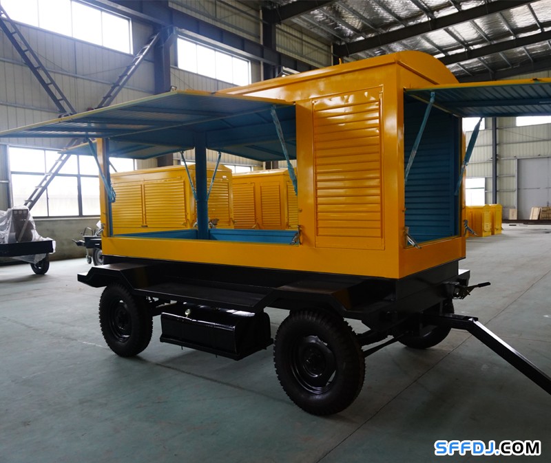 移動拖車柴油發電機組又叫移動電站,我公司參照國外移動電站結構,自行設計和生產的移動拖車發電機組結構多樣化,拖車車架采用檀梁焊接而成,節點選擇合理、強度高、剛性好;采用活動式掛鉤牽引,180°轉盤、轉向靈活;圓形鋼管焊接直通式車軸,同時裝有鋼板彈簧懸架結構;車架四角設有機械式支撐裝置;整車配備轉向和尾燈;車廂尺寸根據規格大小而定,操作人員可在四周行走,便于操作和維護;顏色可由業主自定,確保美觀;設計獨具創新,機動性高、重心低、制造精良、外形美觀,結構緊湊,安全可靠。