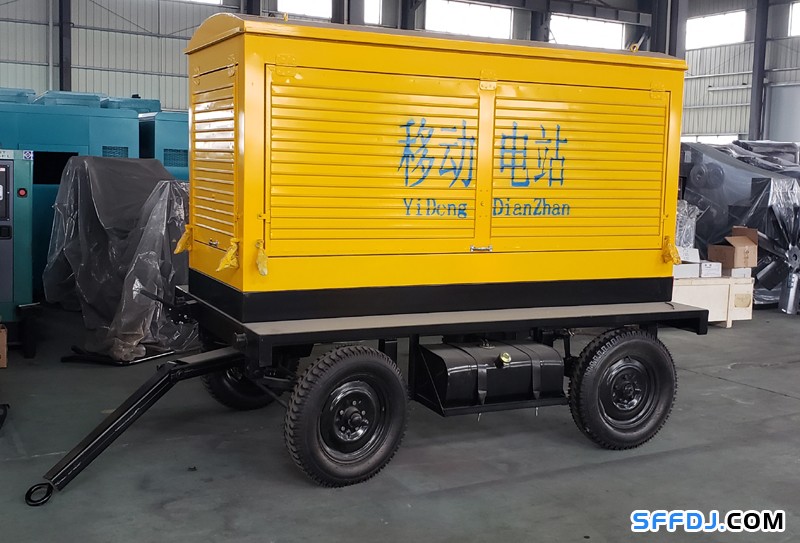 柴油發電機組移動拖車式要求要看工作需要, 移動拖車發電機組框架采用3mm鋼板,經過激光切割、折彎塑型、噴塑烤漆而成,減震良好。 拖車采用高度可調節、插銷式牽引架,適用于各高度牽引車;采用360度轉盤,轉向靈活,機動性高。 發電機組移動方便、操作靈活,具有良好的密封性、安全性,并配有剎車、后尾燈等系統。